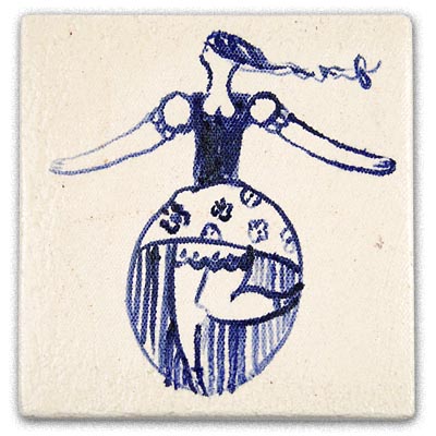 materiał: glina ceramiczna - jasna kolory: kremowo-beżowy, granatowy wymiary: ok. 9,8 x 9,8cm grubość: 0,8cm wykończenie: błyszczące, nienasiąkliwe